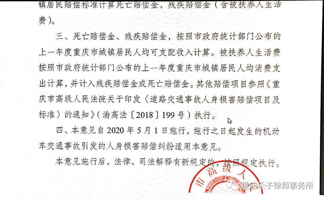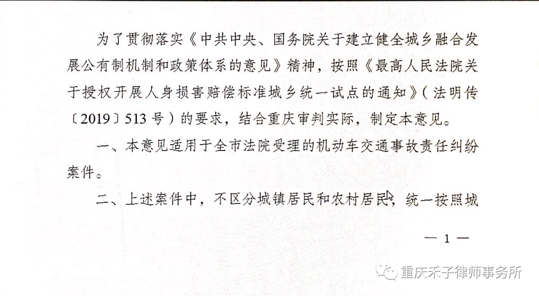 目前重庆仅交通事故责任纠纷适用该意见,医疗事故、劳务关系中的意外伤害等其他原因致使的人身损害赔偿纠纷依然存在同命不同价的情形,若发生除交通事故以外的原因致使的人身损害赔偿纠纷还是建议尽早的委托律师,以便在法律框架内尽量为你争取同命同价的赔偿。也同时希望“同命同价”的意见能尽早的扩大到所有人身损害赔偿纠纷案件案件当中。